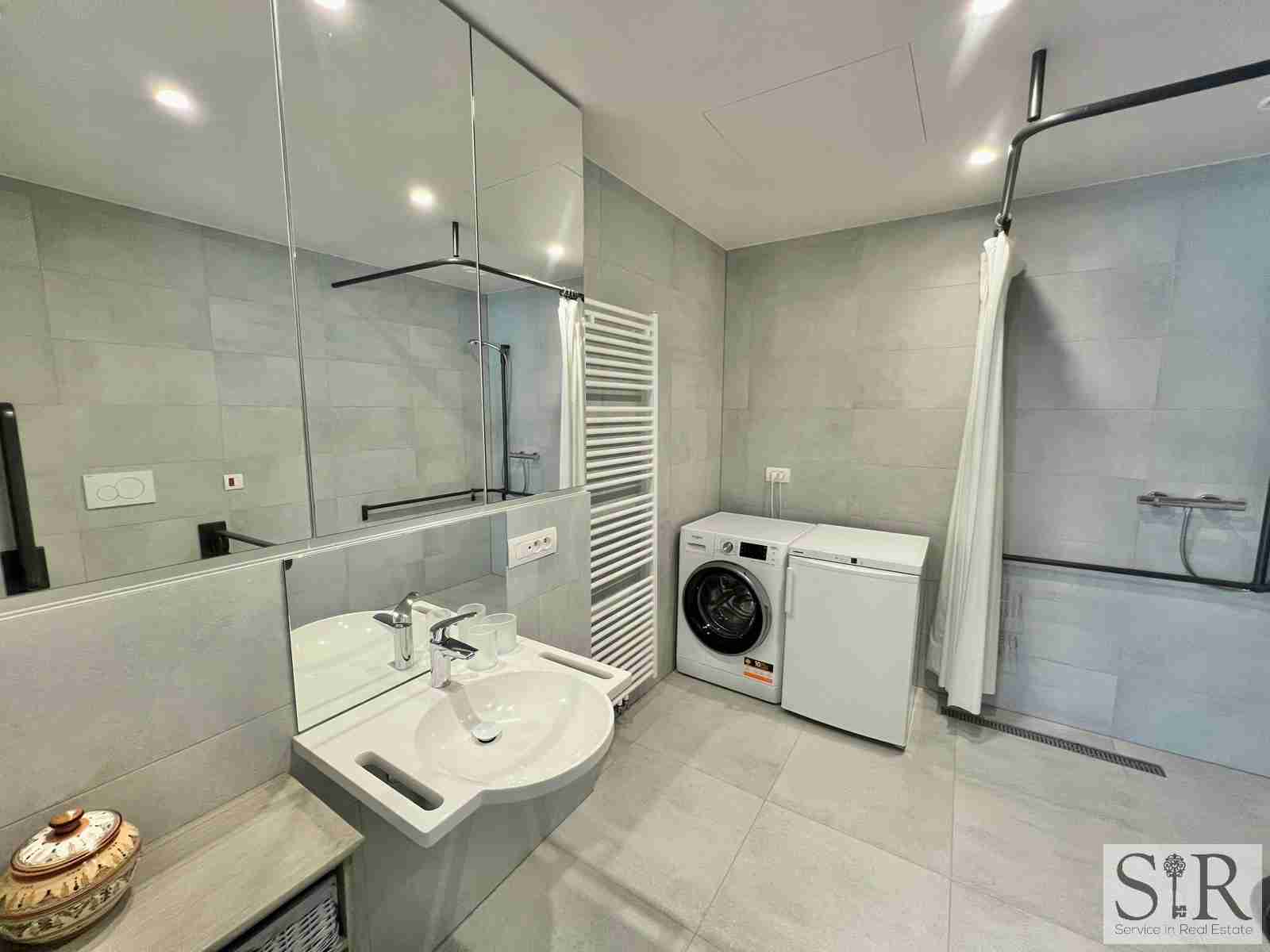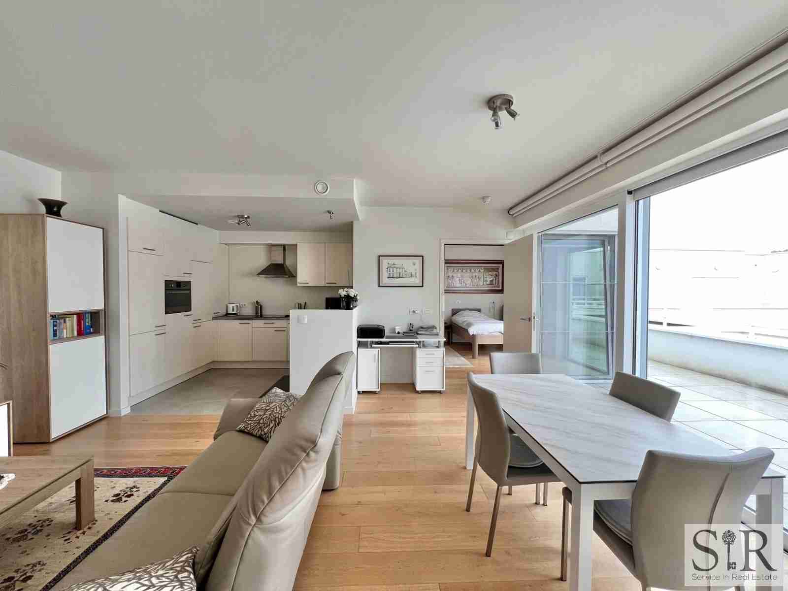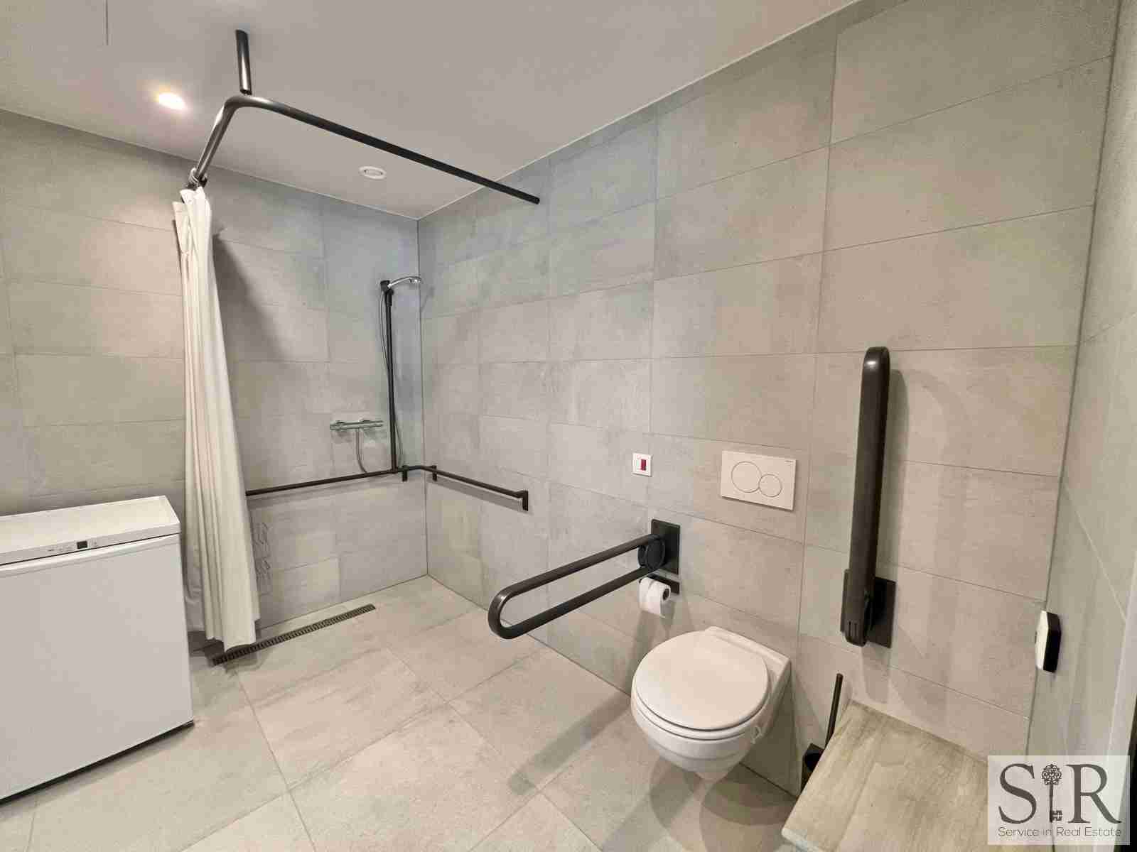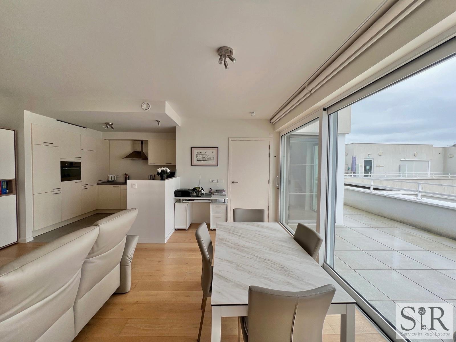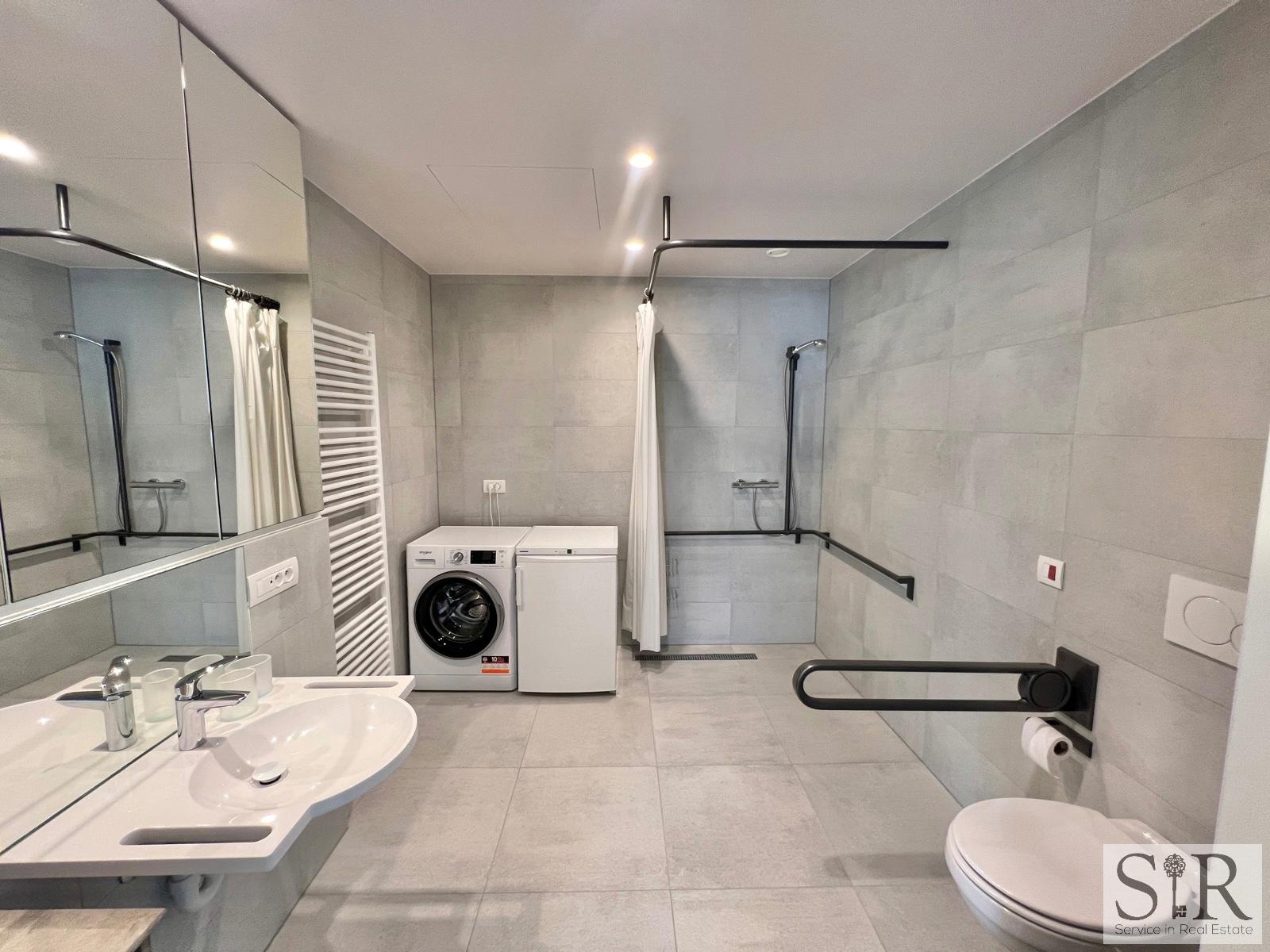 Ook beschikt de serviceflat over domotica, alarm, automatische zonneschermen, ingemaakte kasten en rolluiken.