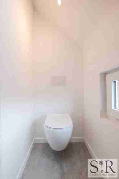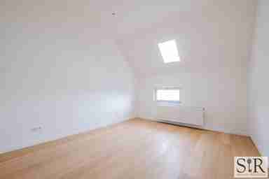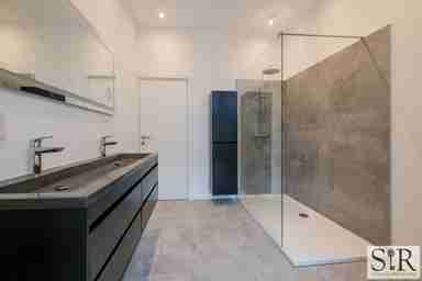 Via de trap bereik je de tweede verdieping waar zich drie comfortabele slaapkamers bevinden met hoge plafonds en veel natuurlijke lichtinval. De badkamer is smaakvol ingericht met een royale inloopdouche, toilet en dubbel lavabomeubel. Ook hier ervaar je datzelfde ruimtelijk gevoel dankzij het grote dakraam dat overvloedig daglicht binnenbrengt in de badkamer, wat zorgt voor een open en frisse sfeer.