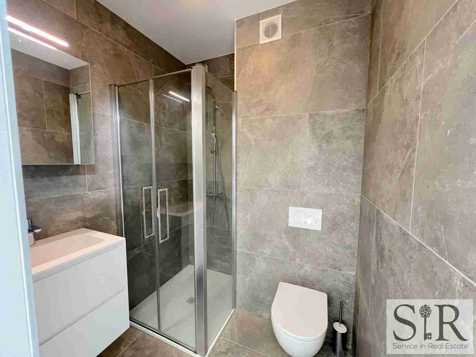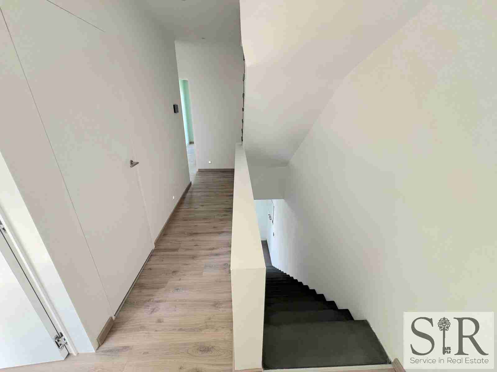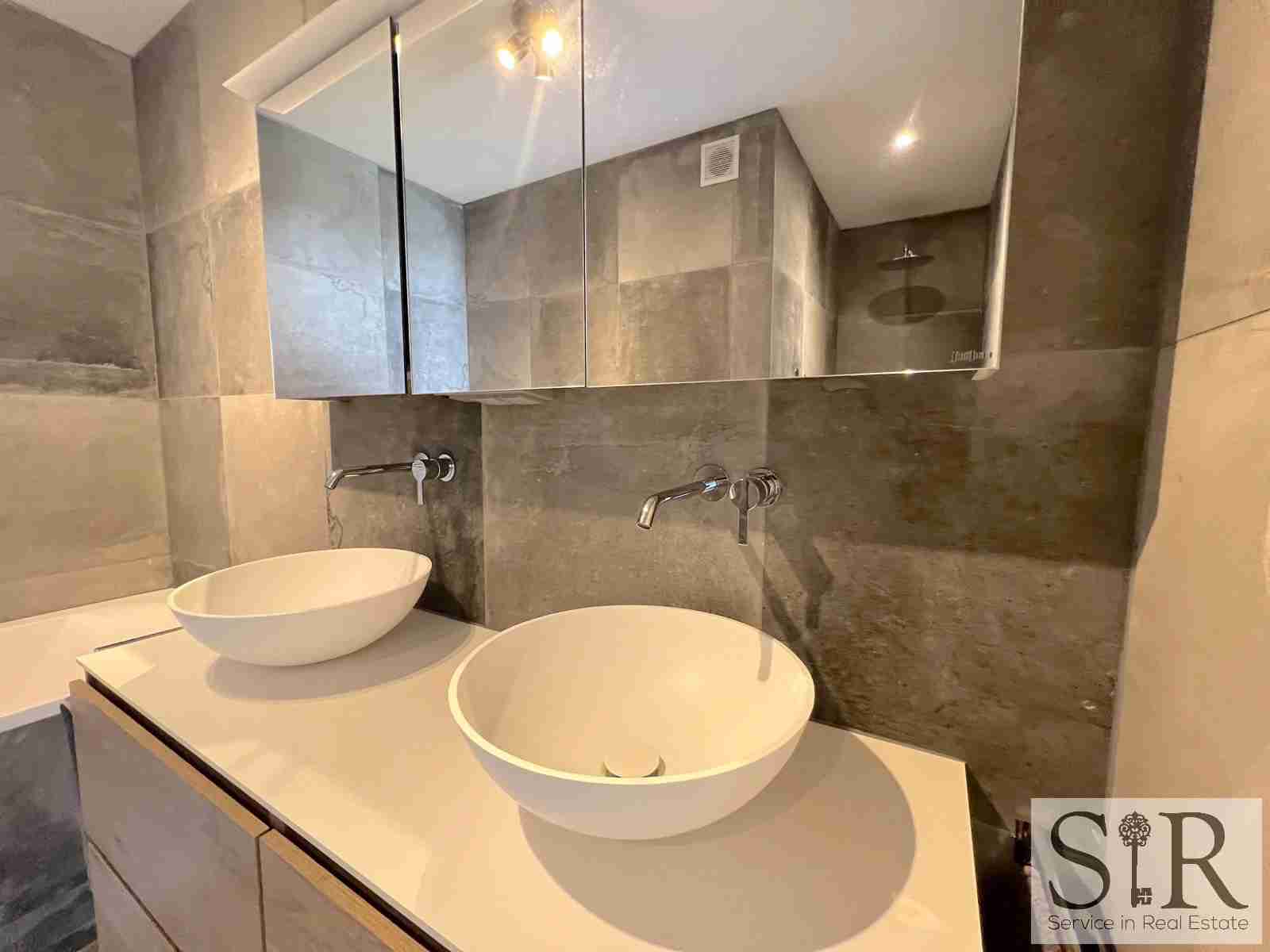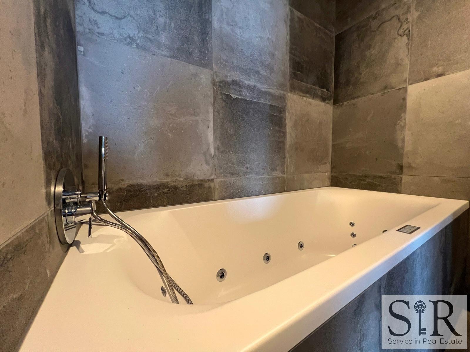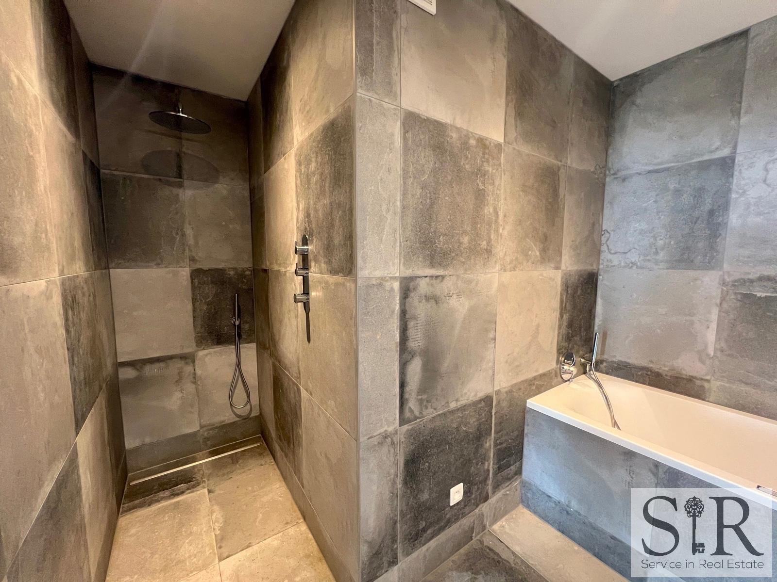 Op de eerste verdieping zijn er twee ruime slaapkamers, een grote dressing, een ruime badkamer met grote inloopdouche, dubbele lavabo en een luxueus ligbad uitgerust met massagesysteem, een apart toilet en een wasberging.